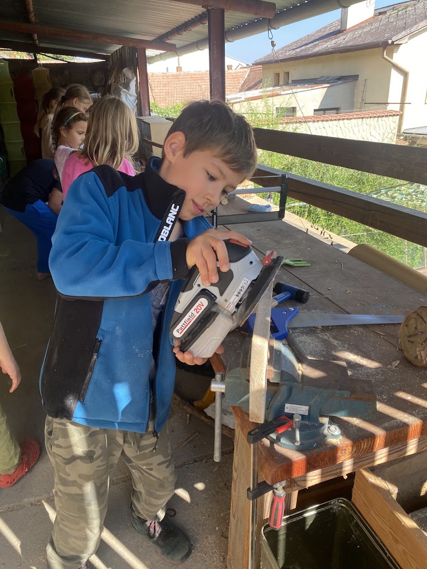Součástí výuky jsou i praktické dovednosti využitelné v každodenním životě – například montáž nábytku, svařování, práce s nářadím nebo výměna pneumatik. Děti chápou smysl toho, co se učí, a zažívají pocit kompetence a užitečnosti.